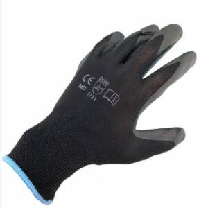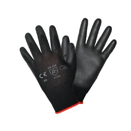 Guante textil de seguridad industrial, fabricado en fibras de nylon, con recubrimiento de poliuretano en palma. Proporciona un excelente agarre y sujeción de piezas que requieren precisión.