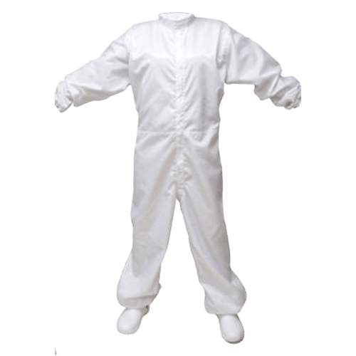Overol AD 98% poliéster y 2% fibra carbón, cuello mao con broche metálico, zona frontal con cierre espiral blanco y solapa, puños elásticos, tobillos con elástico, e hilo monofilamento.